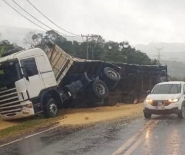 Carreta tomba na PR-487 entre Manoel Ribas e Cândido de Abreu