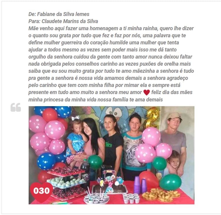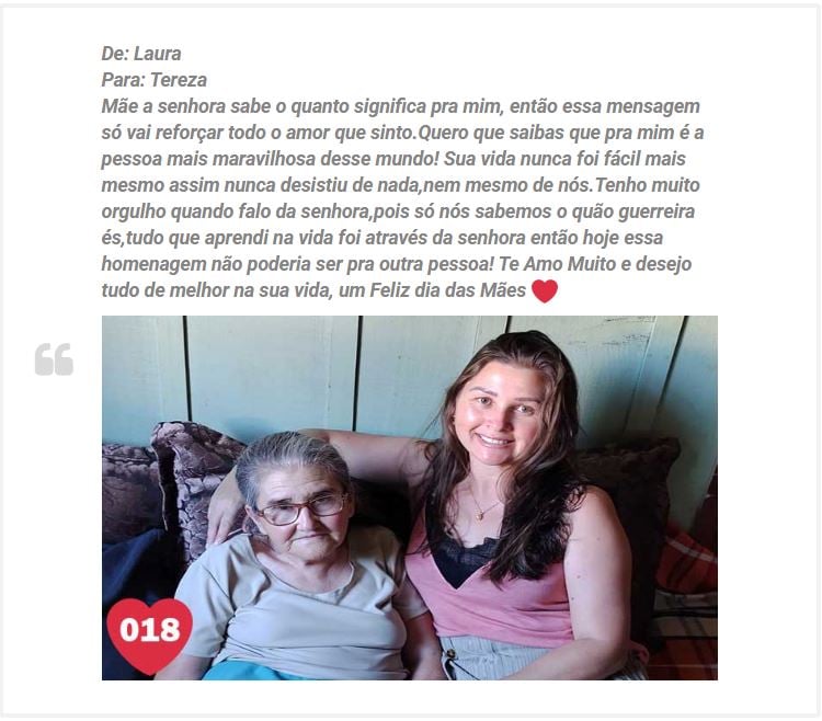 Uma promoção que movimentou muito as redes sociais e o Portal Reserva News, chegou a seu final, foi a promoção “Declare seu amor por sua mãe no Reserva News e concorra a prêmios”. Com a participação de dezenas de filhos e filhas, que nos enviaram belos textos e fotos, fazendo suas declarações de amor por suas mães.