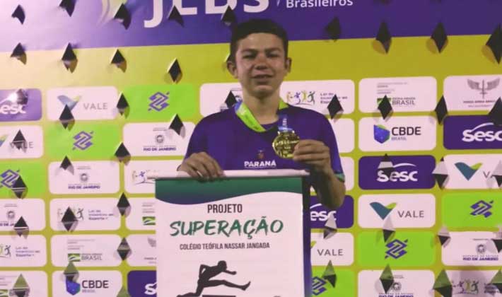 O reservense João Emanoel Domingues, aluno do Colégio Estadual Teófila Nassar Jangada, em José Larcerda, município de Reserva, neste sábado (12) subiu ao degrau mais alto do pódio na prova de revezamento 5×80 metros, nos Jogos Escolares Brasileiros (JEB’S), na cidade do Rio de Janeiro.