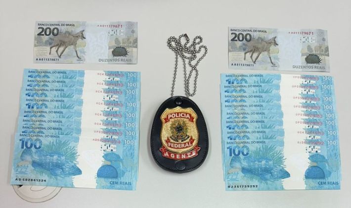 Segundo a PF, foram apreendidas 16 notas de R$ 100,00 e 2 notas de R$ 200,00, todas com números de séries repetidos e elementos que imitam os recursos de segurança das cédulas autênticas.