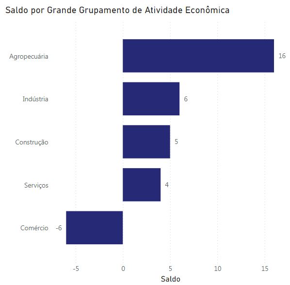De acordo com o Ministério da Economia, o setor de comércio reservense foi o único que registrou saldo negativo, foram fechados 06 postos de trabalho. Já o setor agropecuário foi o principal responsável por alavancar o saldo positivo, 16 novas vagas criadas, seguido pelo setor da indústria, que criou 6 novos postos de trabalho formal, o setor de construção, com 5 novas vagas e o setor de serviços, que registrou 4 novas vagas criadas.