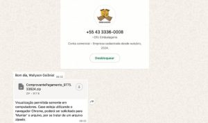 De acordo com especialistas em segurança digital, o ataque começa quando o criminoso envia um arquivo compactado (.zip) via WhatsApp Web, geralmente com um nome sugestivo que remete a um documento importante ou comprovante financeiro.