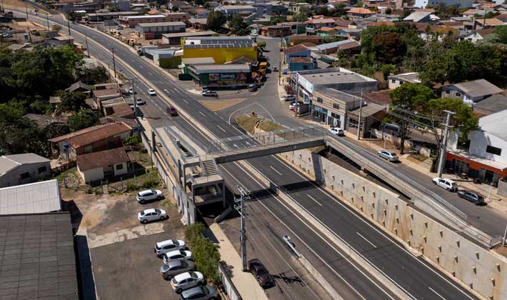 Também foram instaladas duas passarelas: uma em frente ao Colégio Estadual Tancredo Neves e outra em frente ao Cemitério Municipal São José. Ambas contam com rampas antiderrapantes, escadas de acesso, guarda-corpos metálicos e de concreto, cobertura com grade de proteção e iluminação, garantindo acessibilidade a todos.