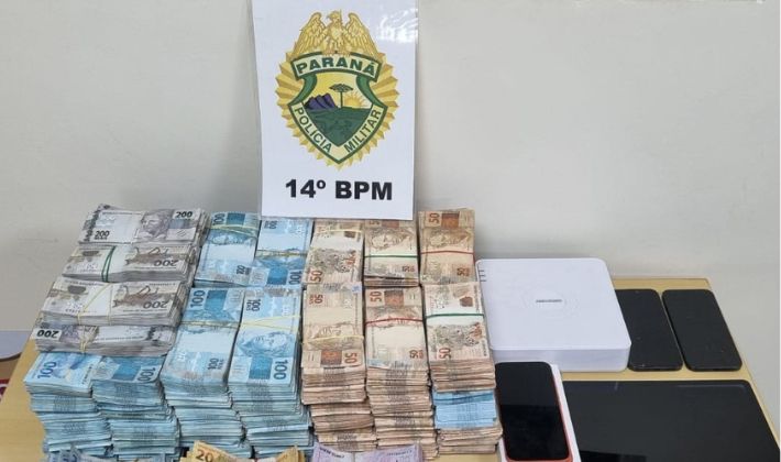 Uma ação conjunta entre a Polícia Militar do Paraná (PMPR) e a Polícia Federal (PF) resultou na apreensão de uma grande quantia em dinheiro durante o atendimento de uma ocorrência de roubo em Foz do Iguaçu, no Oeste do Estado, nesta terça-feira (7).
