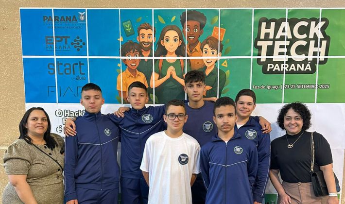 Sobre o Hack Tech – Etapa estadual do 1º Desafio da Educação Profissional e Tecnológica, promovido pela Secretaria da Educação do Paraná (Seed-PR), o HackTech Paraná reuniu em Foz do Iguaçu, no mês de setembro, 171 estudantes da rede estadual. Durante o evento, organizado em formato de hackathon, os alunos foram desafiados a criar soluções inovadoras para problemas reais, envolvendo tecnologia, sustentabilidade e inovação, a partir de projetos previamente selecionados na fase regional.