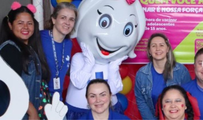 Para tornar o momento ainda mais leve e divertido, as mascotes Zé Gotinha e Maria Gotinha marcaram presença, animando o público e chamando a atenção das crianças para o valor da vacinação.