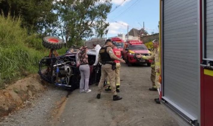 De acordo com informações de testemunhas, o motorista perdeu o controle da direção ao fazer uma curva, bateu em um barranco e o veículo capotou em uma rua de um bairro residencial.