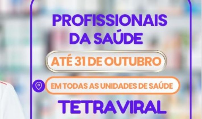 A Secretaria Municipal de Saúde anunciou que está liberada a aplicação da vacina tetraviral para todos os profissionais da área da saúde. O imunizante oferece proteção contra quatro doenças: sarampo, varicela (catapora), caxumba e rubéola.
