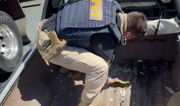 Por volta das 9h30, os policiais abordaram o veículo e perceberam alterações estruturais e forte odor de massa plástica. A equipe aprofundou a vistoria e localizou o compartimento falso. Dentro dele foram encontrados 40,27 quilos de maconha, 535 gramas de haxixe e 315 gramas de cocaína.
