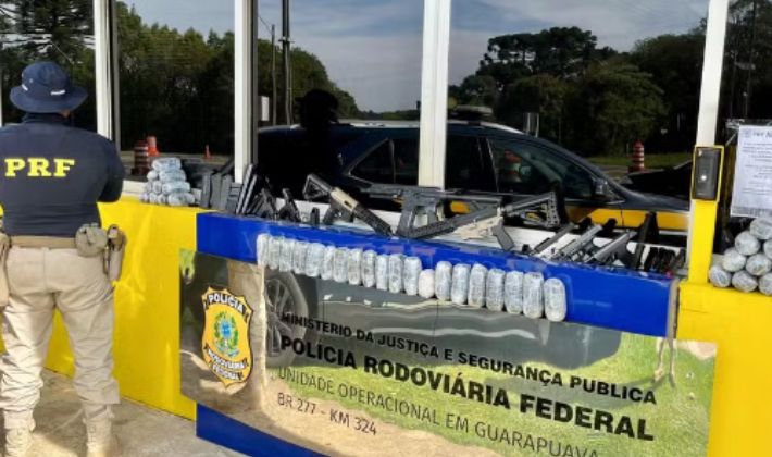 A Polícia Rodoviária Federal (PRF) apreendeu armas de uso restrito e drogas que estavam escondidas em um fundo falso de um veículo estrangeiro neste fim de semana, no Paraná. O flagrante ocorreu na tarde de sábado (25), durante uma fiscalização na BR-277, em Guarapuava, na região central do estado.