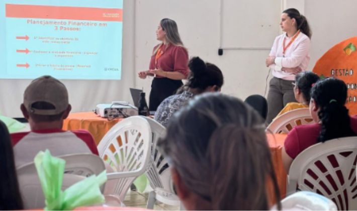 Representando a cooperativa, estiveram presentes Andrieli Cavazoni, gerente de negócios, e Camila Bilek, assistente de negócios, que conduziram a conversa de forma dinâmica, abordando temas como planejamento financeiro, controle de gastos e importância de poupar.