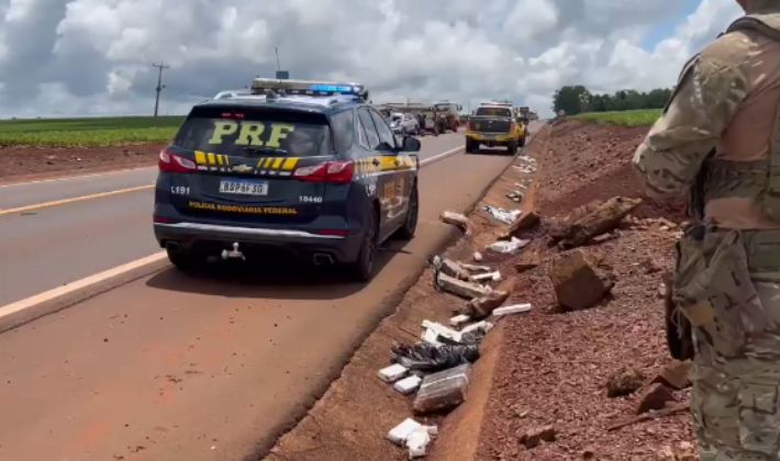 No interior do veículo havia uma carga de maconha que ficou espalhada pela rodovia. A droga ainda será pesada, mas estima-se em uma tonelada.