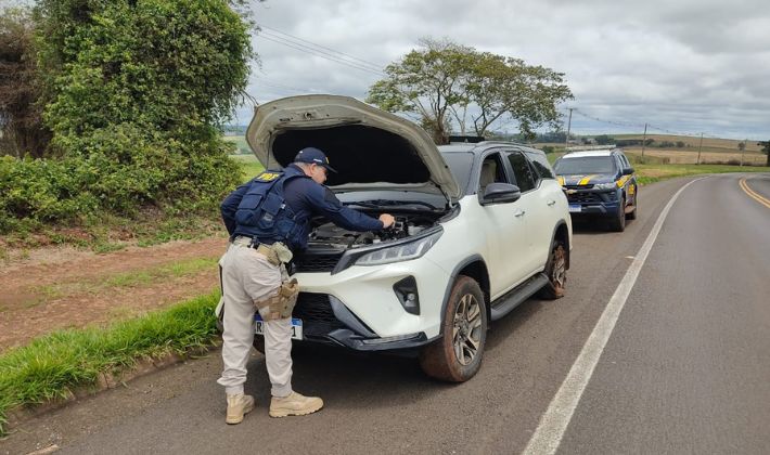No domingo (2), por volta das 10h50, a equipe da PRF deu ordem de parada a um Toyota SW4 branco, no km 642 da mesma rodovia. O condutor desobedeceu à ordem e fugiu em alta velocidade no sentido Matelândia (PR). O veículo foi localizado abandonado próximo ao km 648 e após a verificação do chassi foi confirmado que a placa original era de Guaraniaçu (PR) e que o automóvel possuía registro de furto em Maringá (PR), em 28 de outubro. Avaliado em cerca de R$ 344 mil, o veículo foi recuperado.