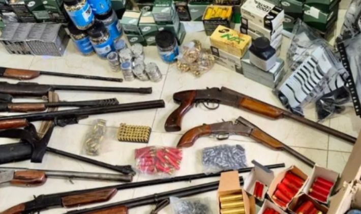 Durante o cumprimento de quatro mandados de busca e apreensão — três na área urbana e um na zona rural — os policiais encontraram um arsenal com 10 armas de diversos calibres, mais de 6 mil munições intactas, 200 tubos de pólvora, diversas espoletas e insumos para recarga.