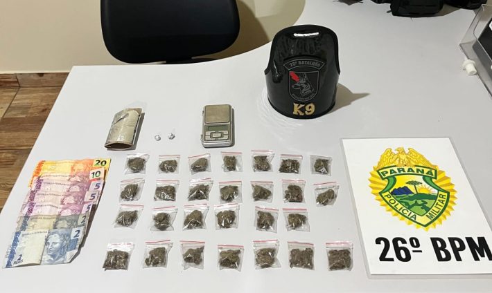 Uma ação da Polícia Militar em Reserva, realizada na noite desta segunda-feira (17), resultou na prisão de um suspeito de tráfico de drogas e na apreensão de entorpecentes, dinheiro e instrumentos utilizados no fracionamento e comércio ilícito. A ocorrência foi registrada pela Canil Setorial (K-9) do 26º Batalhão.