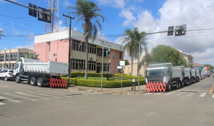 A Prefeitura recebeu, nesta segunda-feira (17), um reforço significativo para sua frota de maquinários. Cinco novos caminhões-caçamba da marca Mercedes-Benz foram entregues e integrarão os trabalhos da Secretaria de Obras, com foco principal na manutenção e recuperação das estradas rurais do município.O investimento total foi de pouco mais de R$ 3 milhões, sendo R$ 605 mil por unidade.