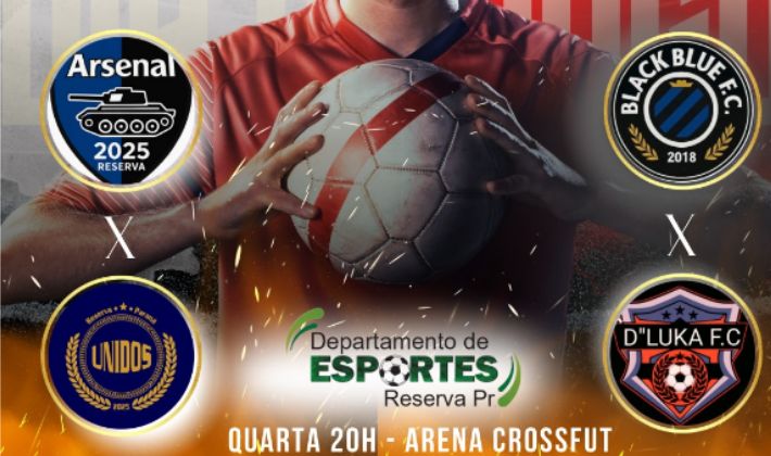 O primeiro duelo da noite será entre o Arsenal 2025 Reserva e o Unidos. Na sequência, entram em jogo as equipes Black Blue FC e D’Luka FC.