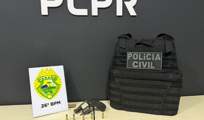 Com base na descrição do suspeito, as equipes iniciaram patrulhamento e localizaram um indivíduo que tentou desviar ao perceber a chegada da viatura. Na abordagem, foi encontrado um revólver calibre .38 de cor preta, com numeração suprimida e desmuniciado.