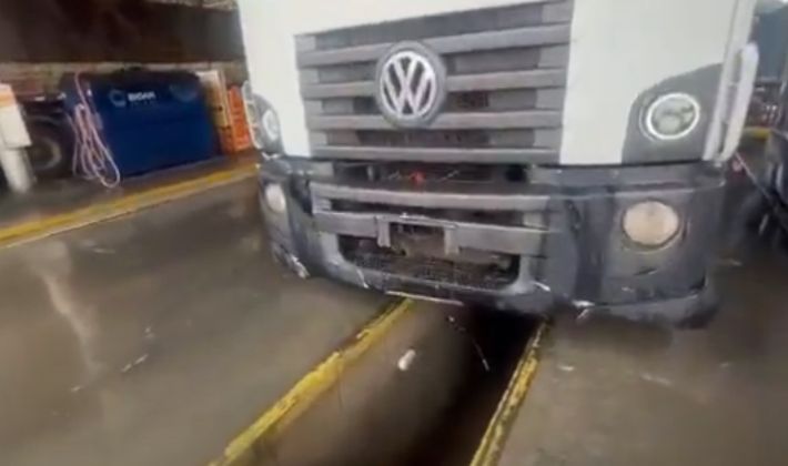 Na vistoria, os policiais verificaram uma série de novas infrações, como excesso de velocidade, tacógrafo inoperante, desrespeiro à lei do descanso, alteração no sistema de iluminação (farol de LED), placas dianteira (escondida) e traseira sem visibilidade, descarga aberta, licenciamento vencido, película instalada irregularmente, pára-brisa trincado e nota da carga sem manifestação de peso.