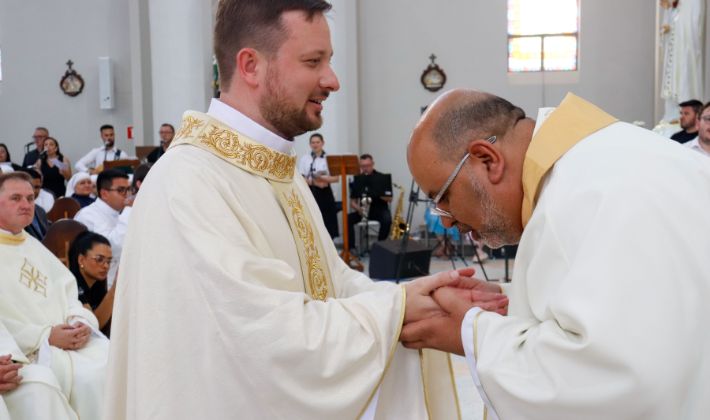 Logo após a celebração, ainda sob o eco dos cânticos e dos aplausos, o neo-sacerdote resumiu o que viveu diante do altar: “O coração tá cheio de emoção, mas também de muita alegria por finalmente poder concretizar essa resposta ao chamado de ser padre, de ser presbítero da Igreja. Quero fazer desse momento apenas o início da minha missão, entregando minha vida a serviço de Deus, da Igreja e do seu povo aqui nesta diocese de Ponta Grossa, que eu amo tanto.”