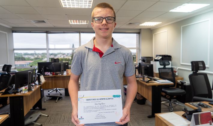 Aluno do 9º ano do Colégio Militar do Paraná, em Curitiba, Davi se destacou entre outros 3 mil estudantes de todo o País, levando para casa a medalha de bronze entre os competidores de Nível 2 – que engloba alunos do 8º e 9º anos do Ensino Fundamental. Outros 11 estudantes paranaenses foram agraciados com medalhas, mas Davi é o único proveniente da rede pública.