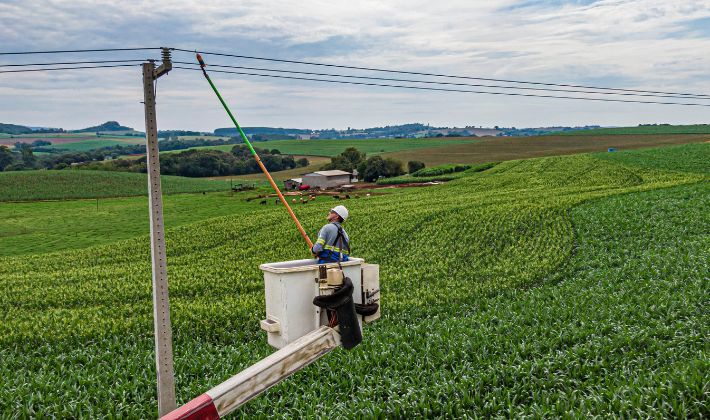 Após a instalação da rede trifásica na região, o produtor interessado deve adequar a entrada de energia da propriedade à nova carga, com serviços realizados por técnico habilitado. Em seguida, é necessário solicitar à Copel o orçamento para a extensão da rede até o local, concordar com a obra e efetuar o pagamento.