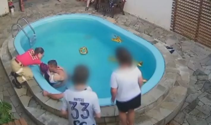 “Eu olhei para a piscina e vi que ele estava se debatendo. Parei por um instante e pensei que tinha algo de errado. Corri, puxei ele para cima e ele já estava ofegante, quase desmaiado”, relatou.