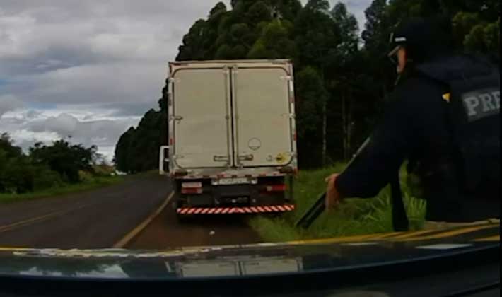 Assista ao vídeo da perseguição e prisão do caminhoneiro, com imagens fornecidas pela PRF: