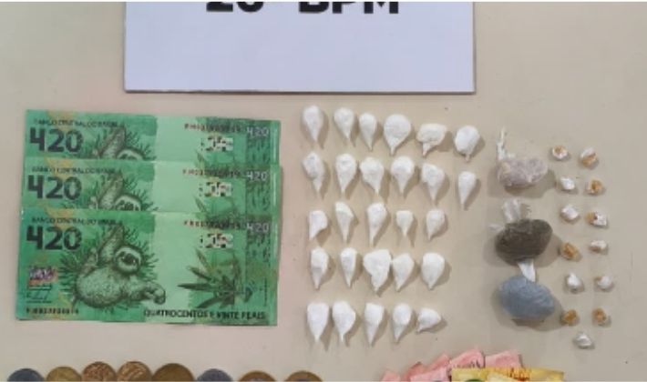 Durante a ação, um indivíduo foi abordado logo após sair do imóvel, sendo localizado com ele entorpecente para consumo, o que corroborou as informações repassadas. Na sequência, as equipes realizaram a entrada no local, onde foram encontradas diversas porções de drogas já fracionadas e prontas para a comercialização, além de dinheiro em espécie e um aparelho celular.