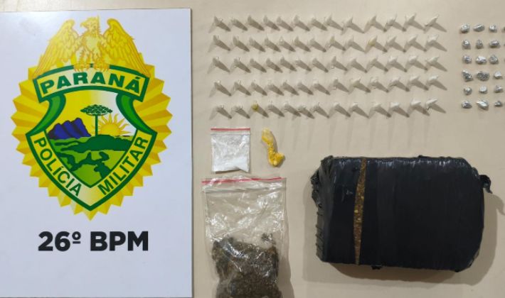 Na busca pessoal, foram localizadas diversas porções de substâncias análogas à cocaína, crack e maconha, já fracionadas e prontas para comercialização. Diante dos fatos, foi dada voz de prisão aos abordados, sendo necessário o apoio da equipe RPA para o encaminhamento até a unidade de pronto atendimento para confecção de laudos médicos e, posteriormente, à delegacia da Polícia Civil do Paraná para as providências legais cabíveis.