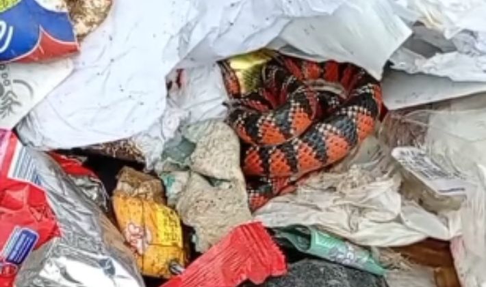 Trabalhadores da Associação de Catadores de Materiais Recicláveis de Tibagi (ACAMARTI) passaram por um susto na tarde desta quinta-feira (22) ao encontrarem uma cobra com características semelhantes às de coral em meio aos rejeitos recebidos pela coleta de lixo no município.