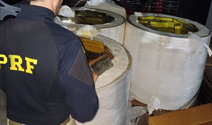 De acordo com a PRF, os policiais abordaram um caminhão Mercedes-Benz L1418 e, durante a fiscalização da carga, identificaram irregularidades nas bobinas, que aparentavam transportar material lícito. Após a ruptura da parte superior das estruturas, foi constatado que o interior escondia fardos recheados com tabletes de maconha.