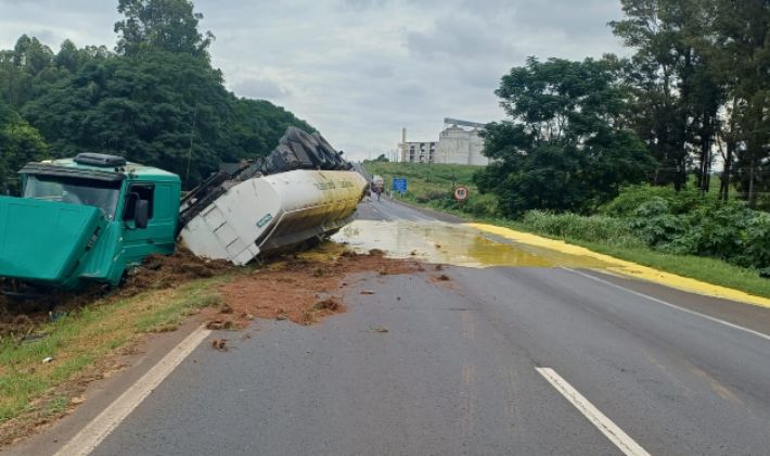 Após a colisão, a carreta Scania tombou no canteiro central. Parte da carga de Lisogoma se espalhou pela pista no sentido sul e atingiu um córrego que passa exatamente pelo local do acidente, levantando preocupação com possível dano ambiental. Já o caminhão Volvo perdeu o controle, invadiu a pista contrária e colidiu contra a defensa metálica, onde ficou imobilizado atravessado na via.