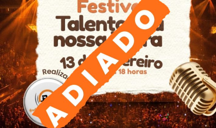 A RW Produções e Eventos informou o adiamento do Festival Talentos da Nossa Terra, que seria realizado nesta sexta-feira (13), a partir das 18h, no Parque das Famílias, em Reserva. A decisão foi tomada devido à previsão de chuva forte para a data.