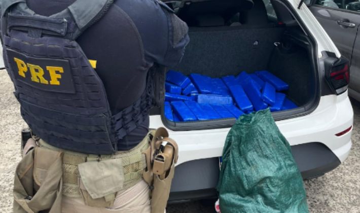 A abordagem ocorreu por volta das 10h, quando os policiais deram ordem de parada ao condutor de um VW Polo branco, com placas de São Paulo (SP). Durante a vistoria no veículo, os agentes encontraram uma grande quantidade de entorpecentes no porta-malas.