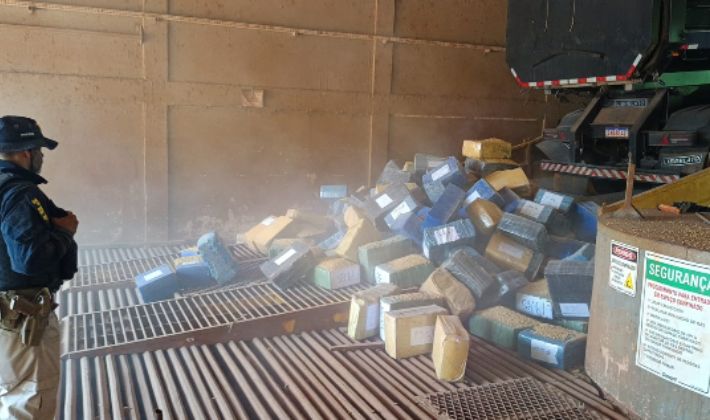 A Polícia Rodoviária Federal (PRF) apreendeu 3.160 quilos de maconha na tarde de terça-feira (10), durante fiscalização na BR-163, em Guaíra, no Oeste do Paraná. A droga estava escondida em meio a um carregamento de soja.