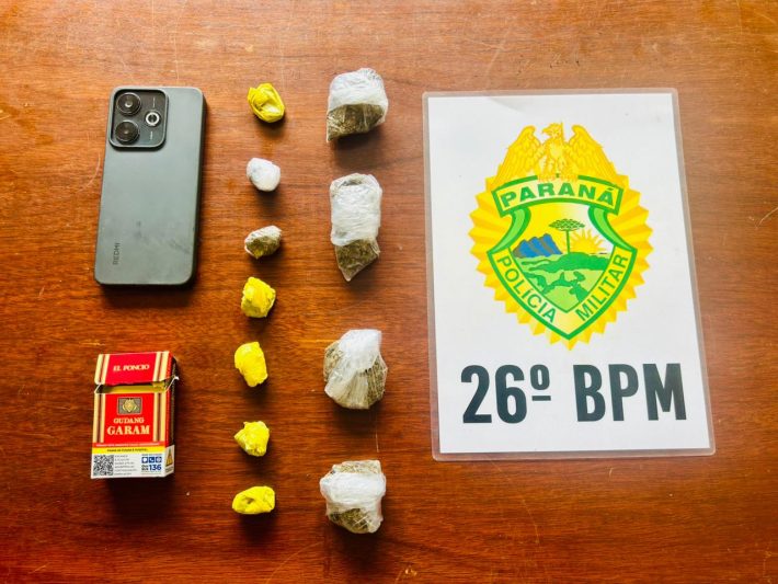 Durante patrulhamento nas proximidades da praça central, em Tibagi, a equipe visualizou dois indivíduos que, ao perceberem a presença da viatura, mudaram bruscamente de direção, levantando suspeita. Na abordagem, foram encontradas porções de substância análoga à maconha com ambos.