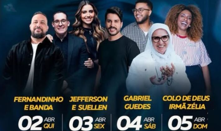 A programação do festival ainda conta com nomes conhecidos da música cristã, como Fernandinho (dia 2), Jefferson e Suellen (dia 3) e Gabriel Guedes (dia 4). Os portões abrem às 17h nos dias 2, 3 e 4, e às 15h no domingo, com entrada por ordem de chegada.