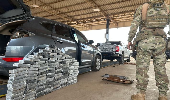A droga era transportada em dois veículos que foram abordados na rodovia e levados até um posto de combustíveis para abertura dos compartimentos em que os produtos estavam escondidos: assoalhos e lanternas.