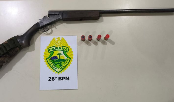 Entretanto, na busca veicular, os policiais localizaram uma espingarda calibre 12, acompanhada de munições. Questionado, o homem afirmou que a arma pertenceria a um familiar e que estava sob sua posse.