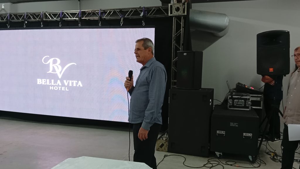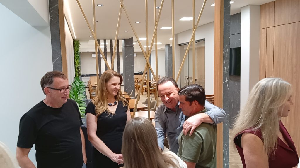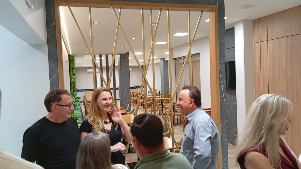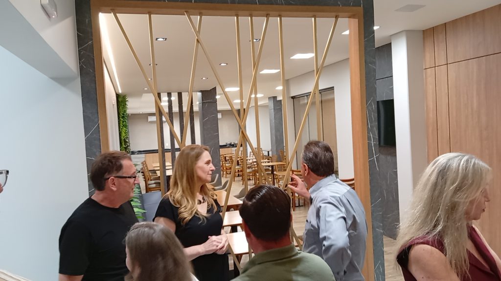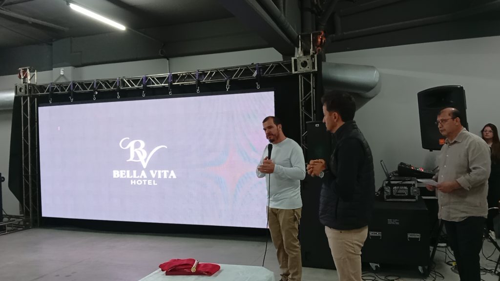 Durante a cerimônia, um dos momentos mais marcantes foi a fala do empresário Aleixo Lopata e de sua esposa Marinez, exibida em um vídeo que apresentou toda a estrutura do hotel e destacou a trajetória do empreendimento: