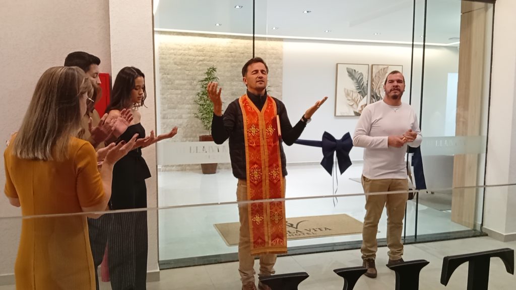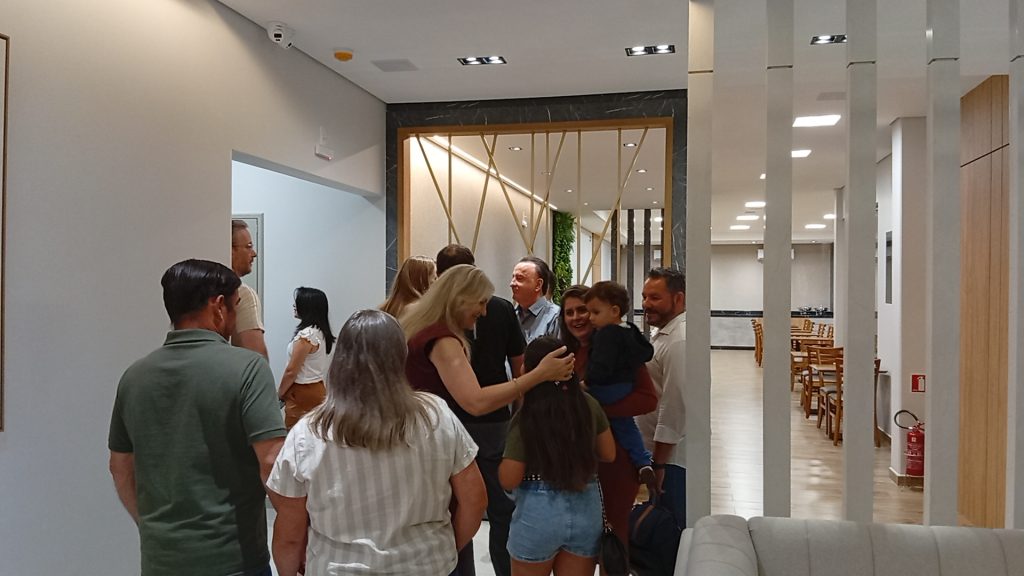 A frase simbolizou o esforço da família na concretização do projeto. Na sequência, a faixa inaugural foi oficialmente cortada por Aleixo, ao lado de sua esposa Marinez, marcando o início das atividades do hotel.