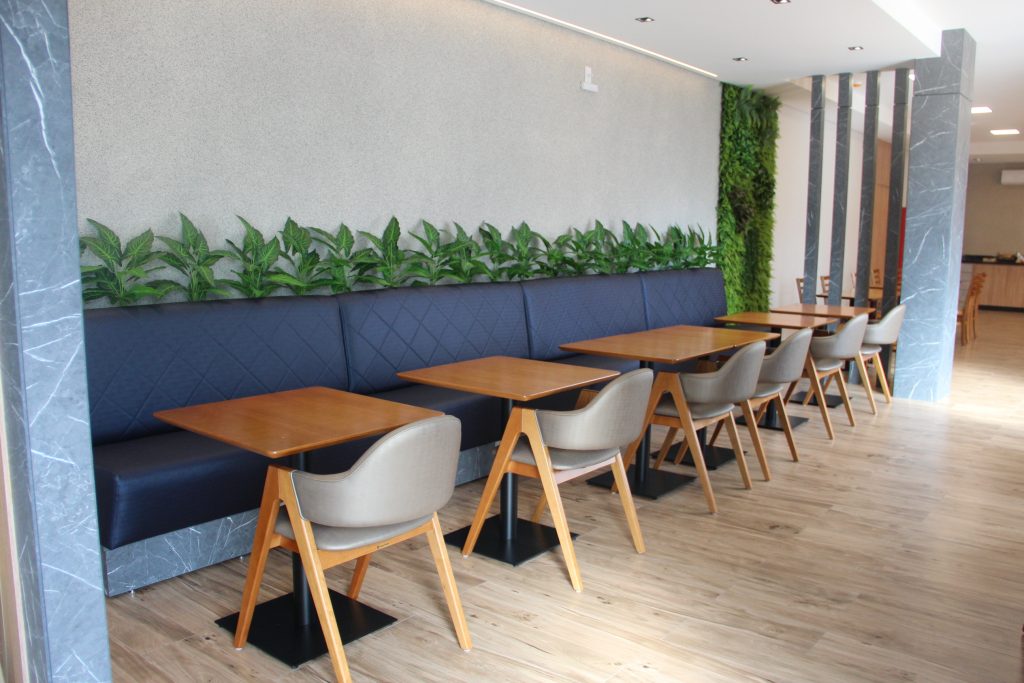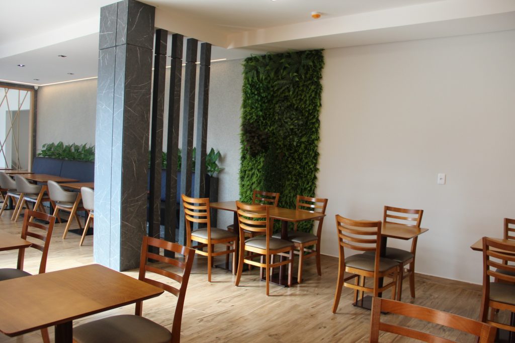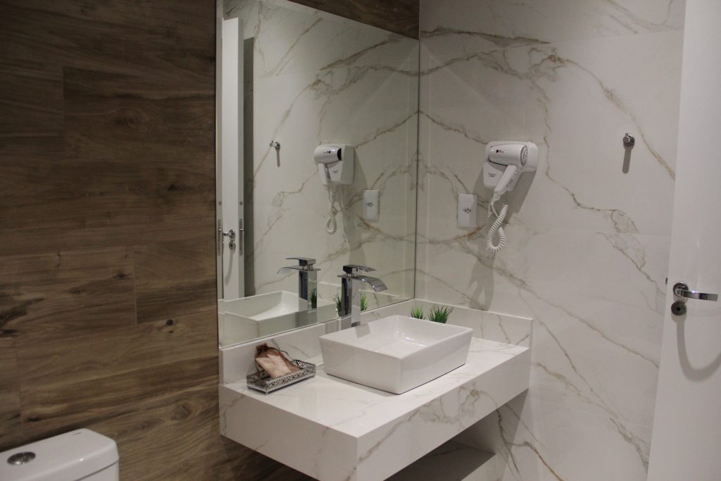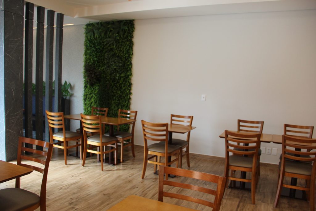 O hotel conta com uma fachada de destaque e uma ampla e elegante recepção, além de estacionamento coberto. Entre os diferenciais, está um grande salão com cozinha completa, pensado para oferecer um café da manhã de qualidade e também atender eventos. Os quartos foram equipados com móveis planejados e eletrodomésticos modernos, com todos os ambientes climatizados.