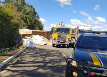 Colisão seguida de tombamento na BR-277 deixa caminhoneiro ferido no Paraná